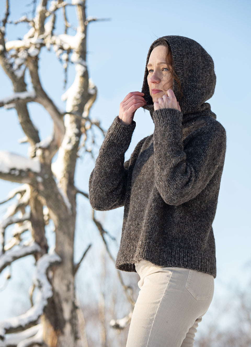 PMK mallistoon on pian tulossa Katve-puseron lisäksi Katve-huppu, joka näkyy toisessa kuvassa. Jos tilaat puseron lisäksi hupun, saat parista ihastuttavan hupparin. Irrallinen huppu tekee vaatteesta riemastuttavan monikäyttöisen. Voit käyttää molempia neuleita tietenkin myös erikseen. Katve huppu tulee myyntiin huhtikuun ensimmäisellä viikolla.