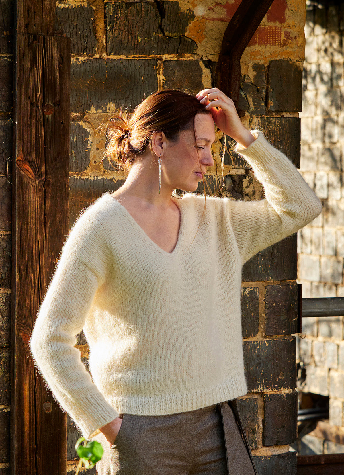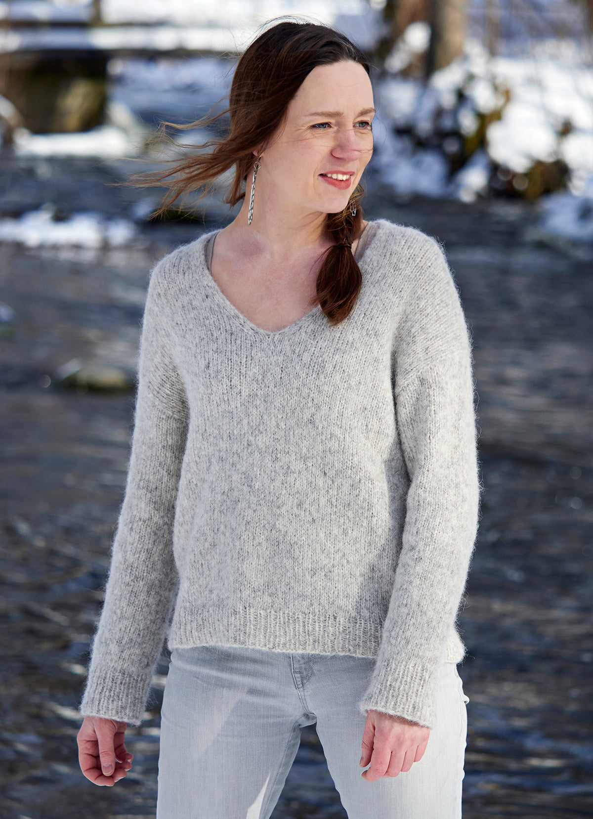 Savu-pusero on klassisen kaunis, eleetön perusneule. VÀljÀssÀ neulepuserossa on V-pÀÀntie ja ylÀlantiolle ulottuva helma. Takakappaleen puolella helma on 2 cm pidempi.